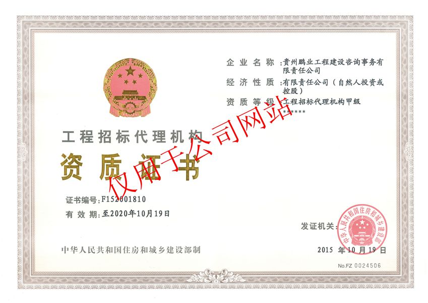 工程招標(biāo)代理甲級、工程造價咨詢甲級、工程監(jiān)理甲級、中央投資項目招標(biāo)代理甲級、政府采購代理甲級